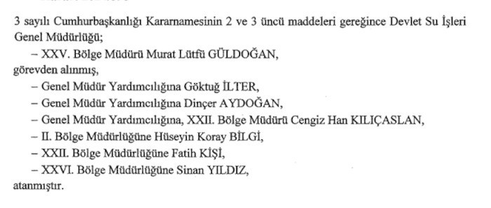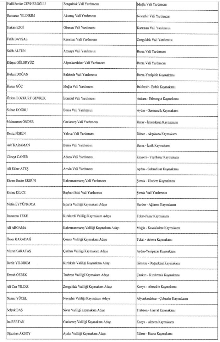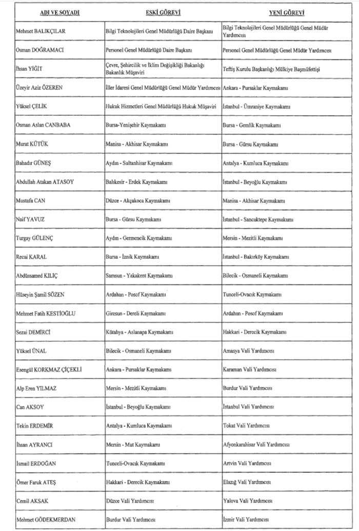 Kararlar arasında, tutuklanan Esenyurt Belediye Başkanı Ahmet Özer’in yerine kayyım olarak görevlendirilen Can Aksoy’un Beşiktaş Kaymakamlığından İstanbul Vali Yardımcılığı’na atanması da yer aldı.