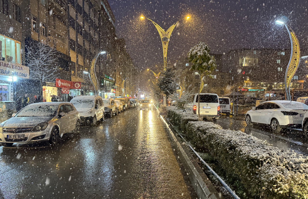 Hakkari’de de akşam saatlerine etkili olan yağış nedeniyle ev ve iş yerlerinin çatıları ile araç ve ağaçların üzeri karla kaplandı. Yüksek kesimlerin beyaza büründüğü kentte, sürücüler trafikte kontrollü olarak ilerledi. Trafik ekipleri sürücüleri takip mesafelerini korumaları yönünde uyardı.