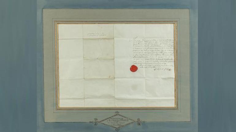 Ancak “şans yıldızını” kaybettiği için çok üzgündü ve ayrıldıktan sonra da Josephine ile mektuplaşmaya devam etti. Sotheby’s’e göre, resmi, daha küçük formatlı belgeleri içeren benzer bir kırmızı portföy, Fransa’daki Ulusal Arşivlerde korunuyor.