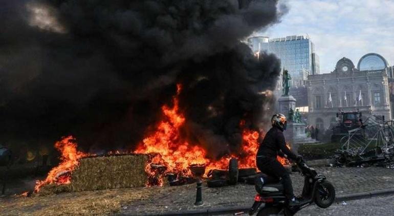 Bariyerlerin arkasında bulunan polislere aldırmadan traktörlerini sürmeye devam eden çiftçiler Avrupa Parlamentosu (AP) binası önünde de etrafı birbirine kattı. Çiftçiler AP önünde ateş yakarken, çevredeki parlamento binalarına taş, sis bombası ve havai fişek de attı. Lüksemburg Meydanı’ndaki polis barikatları da traktörlerle yıkıldı.