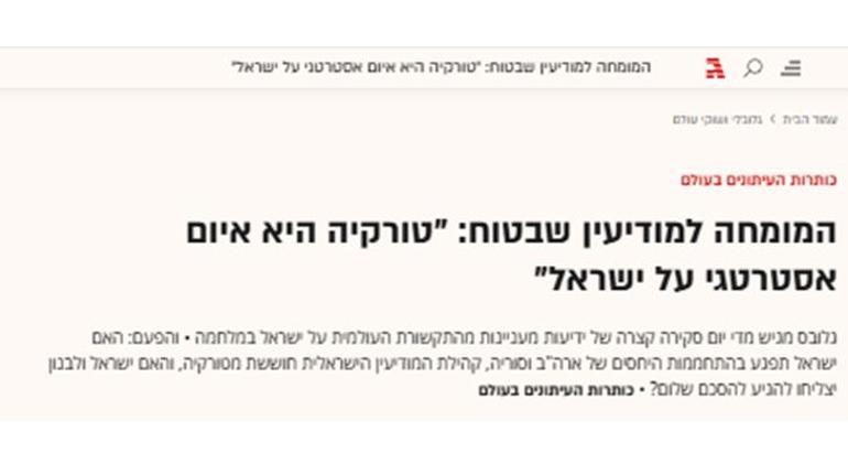 MİLLİYET.COM.TR / İsrail’in önde gelen gazetelerinden Globes’ta yayımlanan haberde, Tel Aviv Üniversitesi’nden istihbarat uzmanı Dr. Yaakov Falkov, Türkiye’nin Orta Doğu’daki etkisinin son yıllarda gözle görülür biçimde arttığını belirterek, bu durumun İsrail için “ciddi bir stratejik tehdit” haline geldiğini ifade etti.